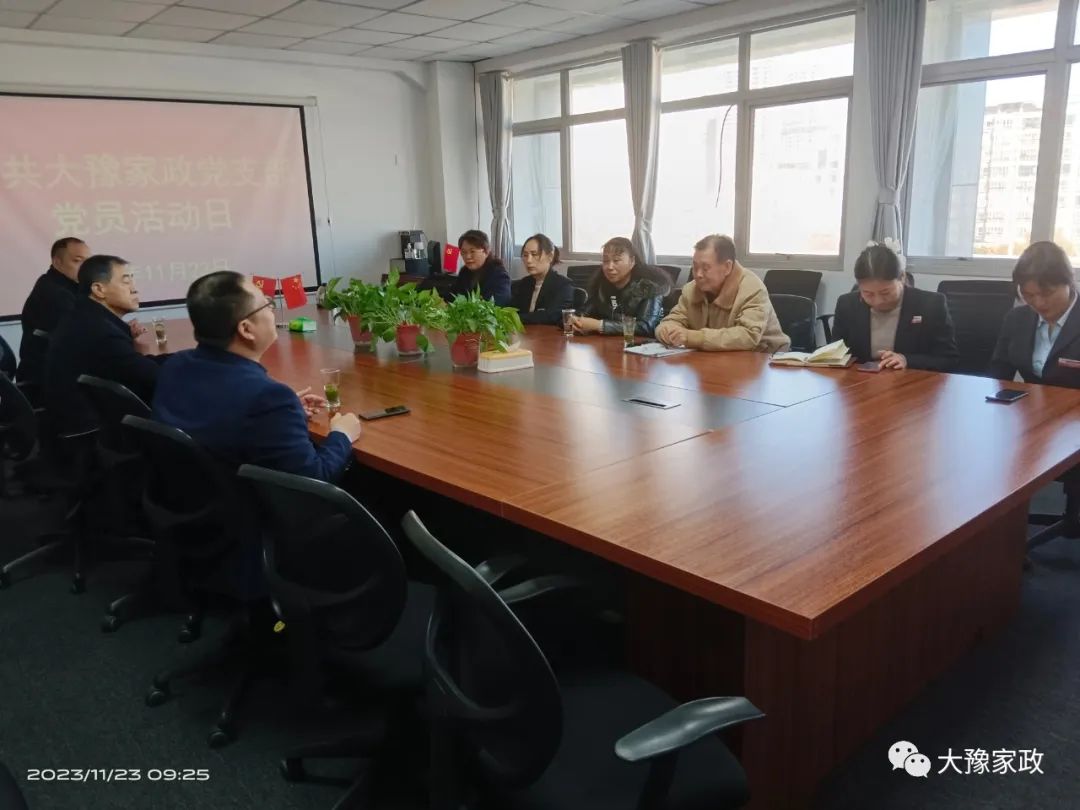 2023年11月23日上午九點(diǎn),中共河南大豫家政服務(wù)有限公司支部委員會(huì )黨員活動(dòng)日在江山商務(wù)廣場(chǎng)6層620室召開(kāi)