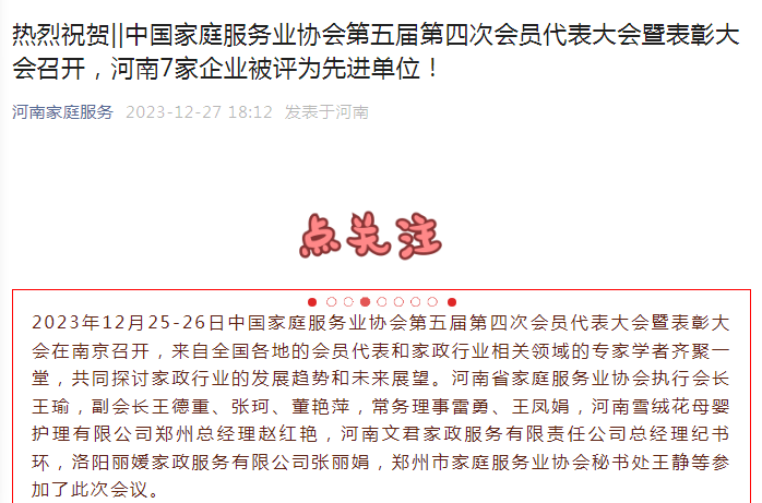 中國家庭服務(wù)業(yè)協(xié)會(huì )第五屆第四次會(huì )員代表大會(huì )暨表彰大會(huì )在南京召開(kāi),河南大豫家政被評為先進(jìn)單位