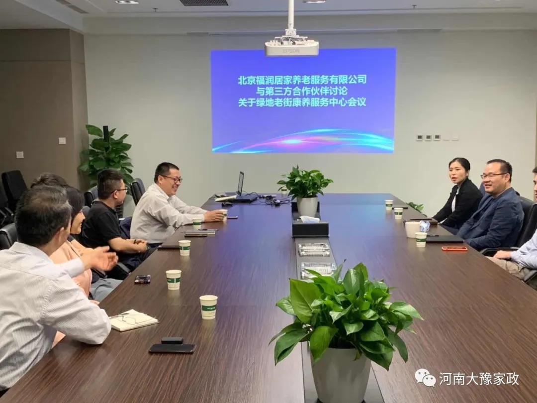 2020年5月7日下午,大豫家政董事長(cháng)王德重在綠地雙塔參加關(guān)于綠地老街康養服務(wù)中心討論會(huì ),在會(huì )議上董事長(cháng)王德重介紹了大豫家政的業(yè)務(wù)以及和綠地中心合作的事宜。