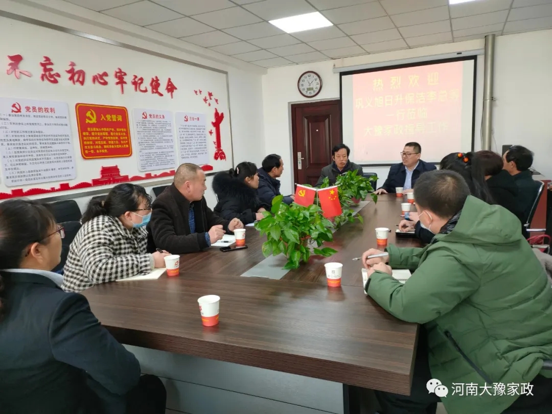 2021年1月13日上午,鞏義旭日升保潔李總等一行蒞臨大豫集團指導工作,交流學(xué)習,大豫集團董事長(cháng)王德重攜總部管理人員熱情接待,并就家政保潔行業(yè)溝通交流。