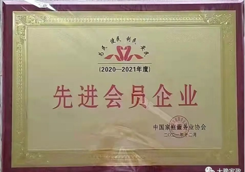 河南大豫家政服務(wù)有限公司獲得國家庭服務(wù)業(yè)協(xié)會(huì )頒發(fā)的2020-2021年度“先進(jìn)會(huì )員企業(yè)”。