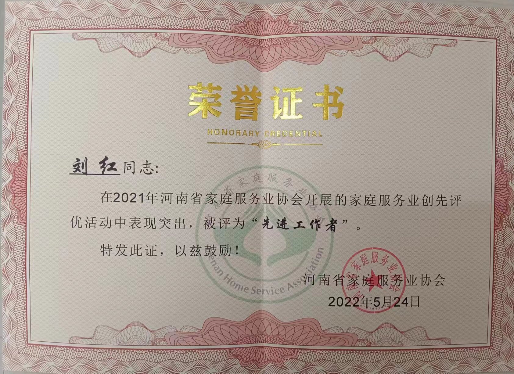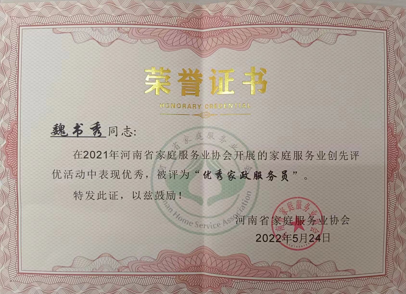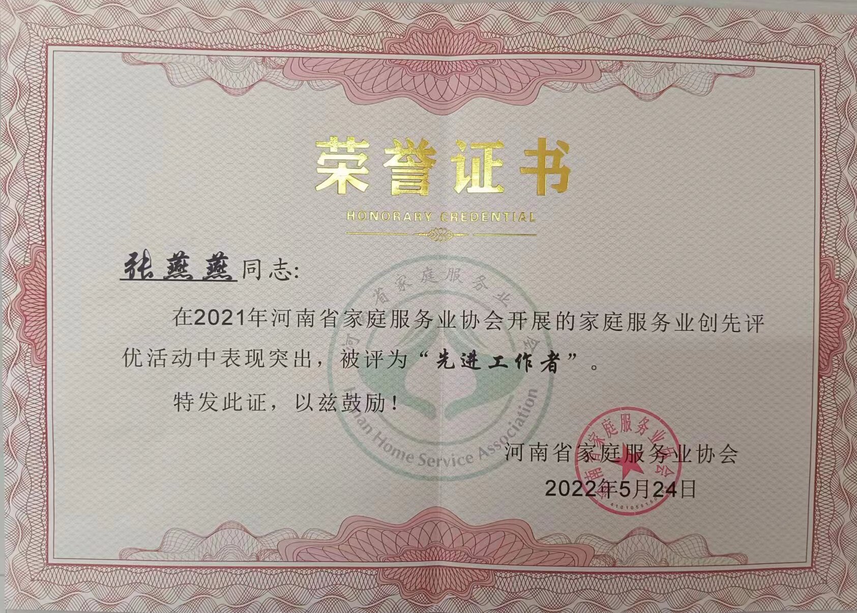 2、河南省家庭服務(wù)業(yè)協(xié)會(huì )榮譽(yù)