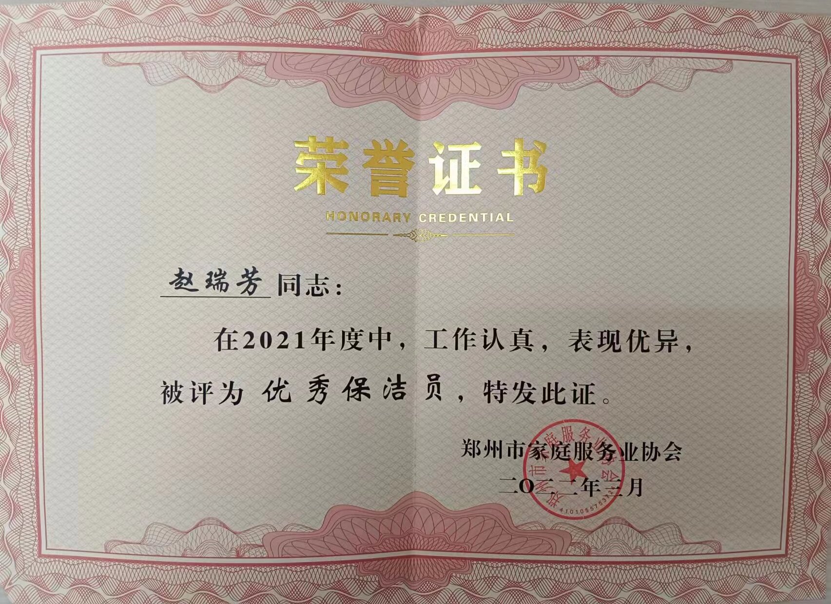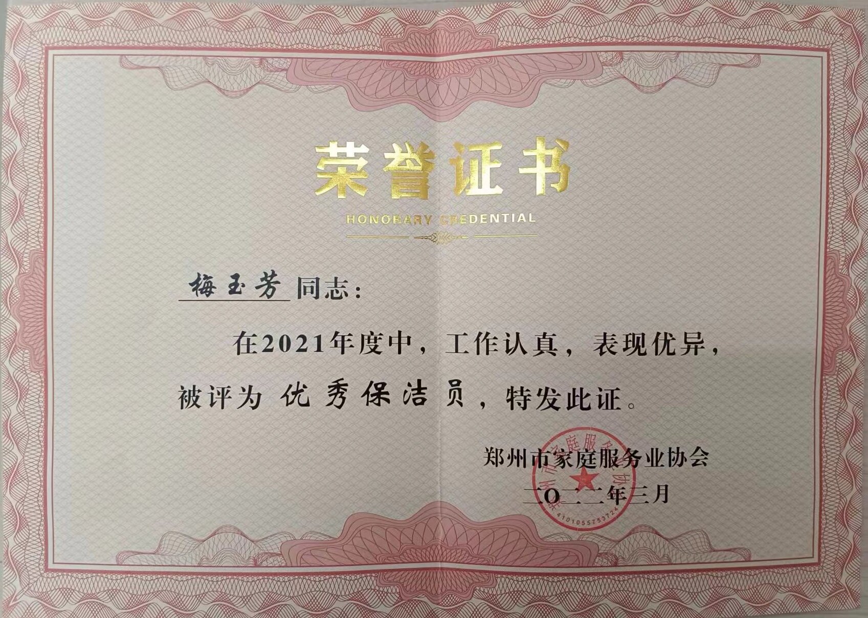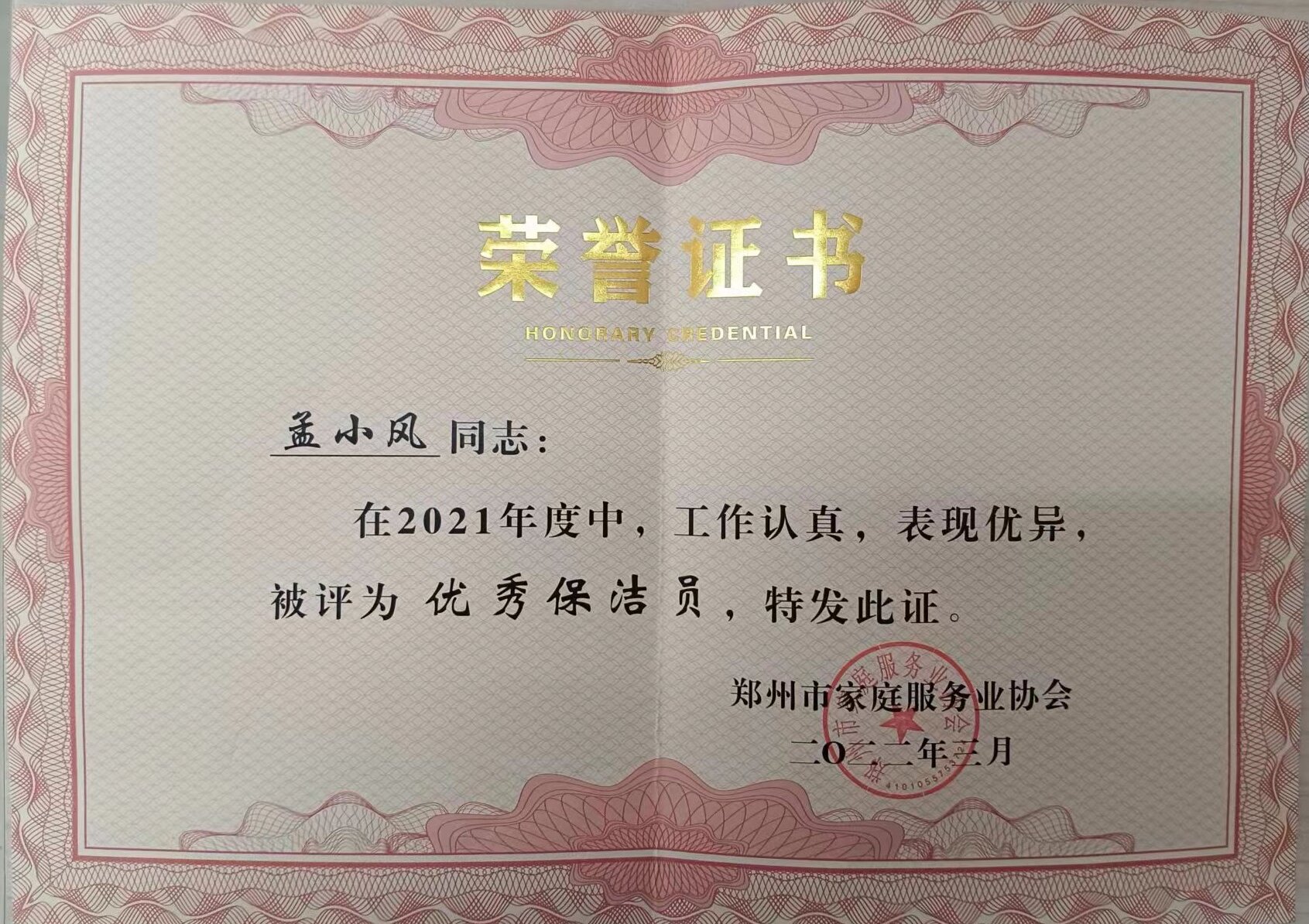 2022年是河南大豫家政服務(wù)有限公司獲得政府和行業(yè)高度贊揚和認可的一年。我公司單位和個(gè)人先后獲得政府和行業(yè)協(xié)會(huì )的相關(guān)榮譽(yù)。
