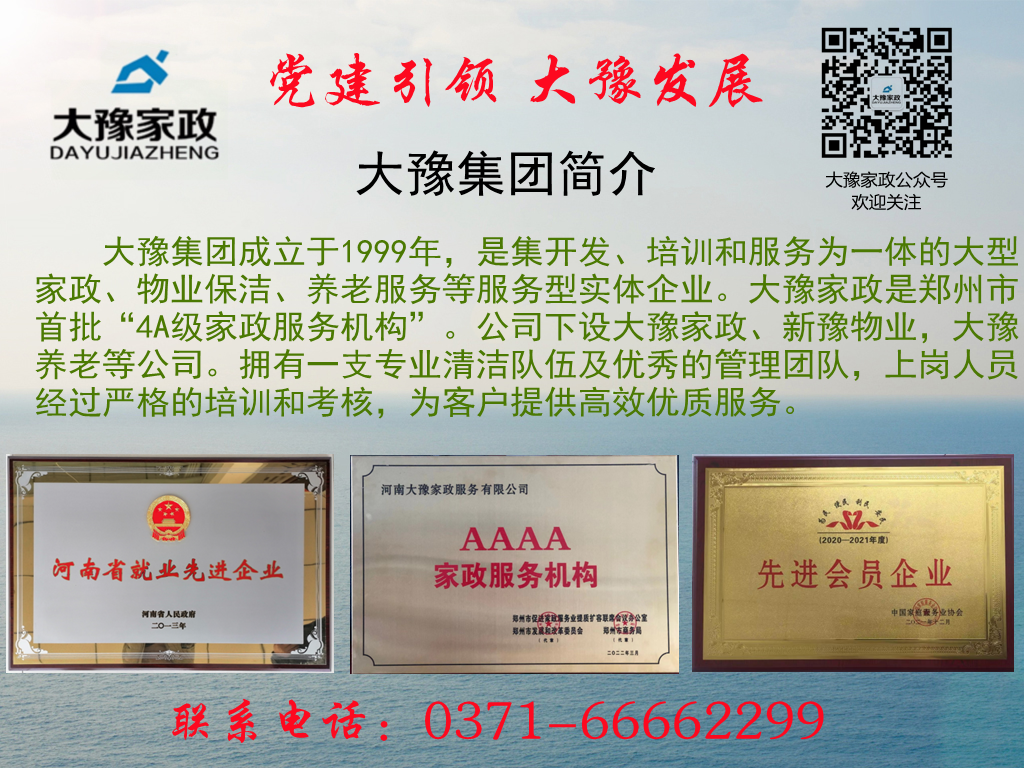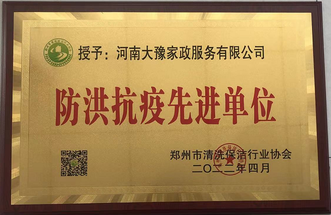 2022年7月13日,大豫家政公司被鄭州清洗保潔行業(yè)協(xié)會(huì )授予“先進(jìn)單位"、“防洪抗疫先進(jìn)單位”。