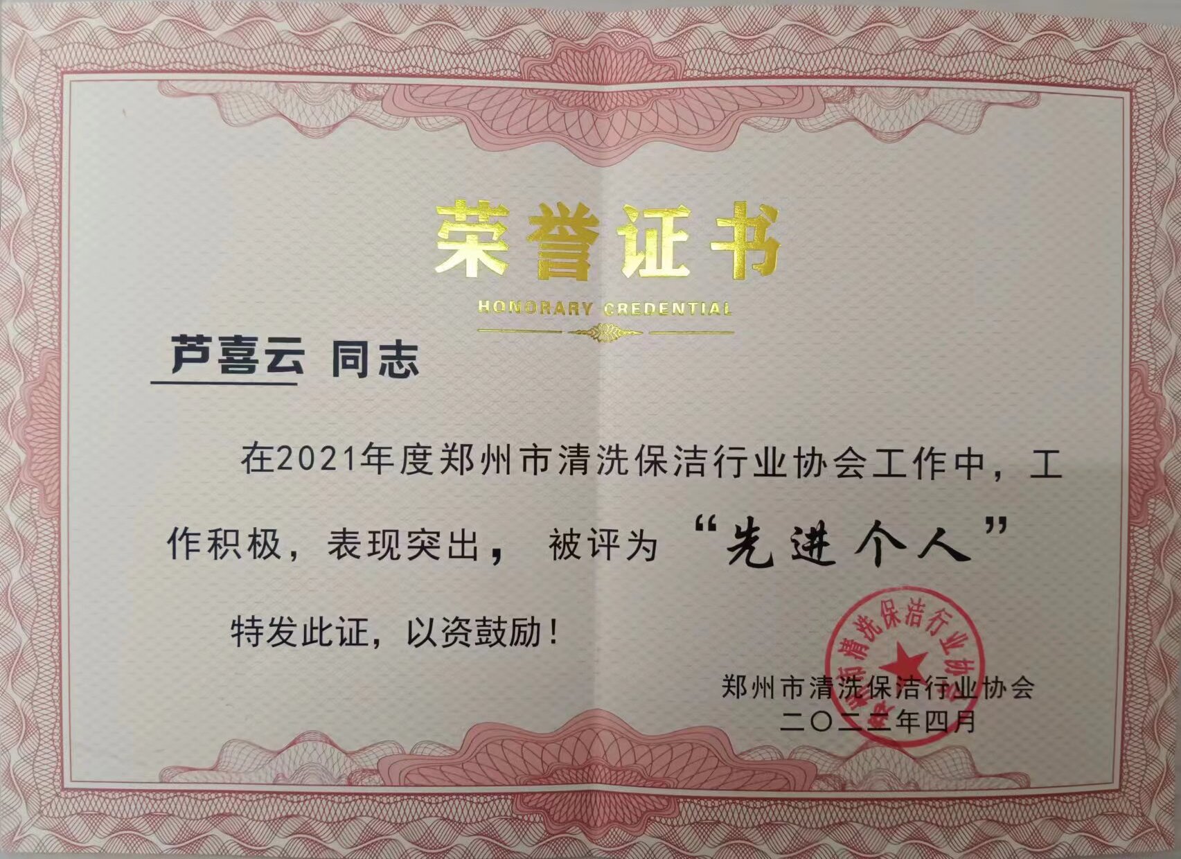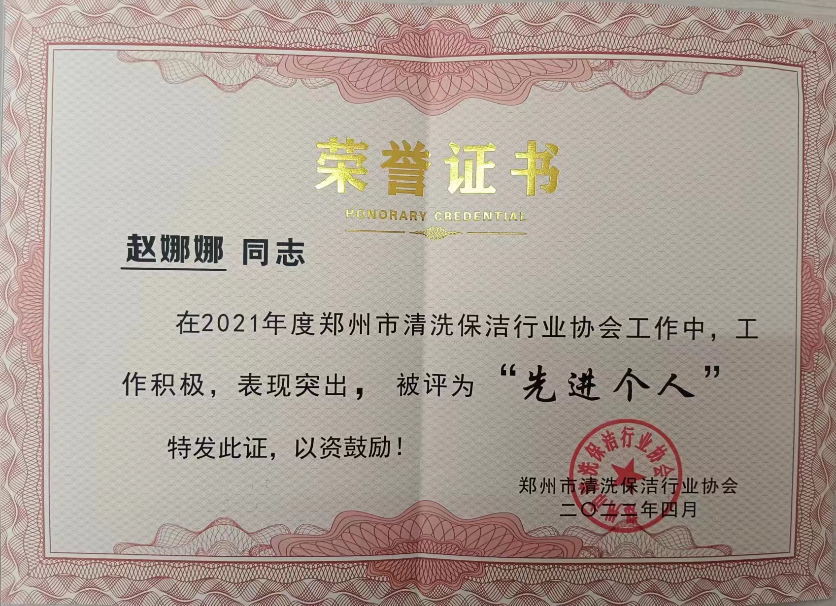 4、鄭州市清洗保潔行業(yè)協(xié)會(huì )榮譽(yù)