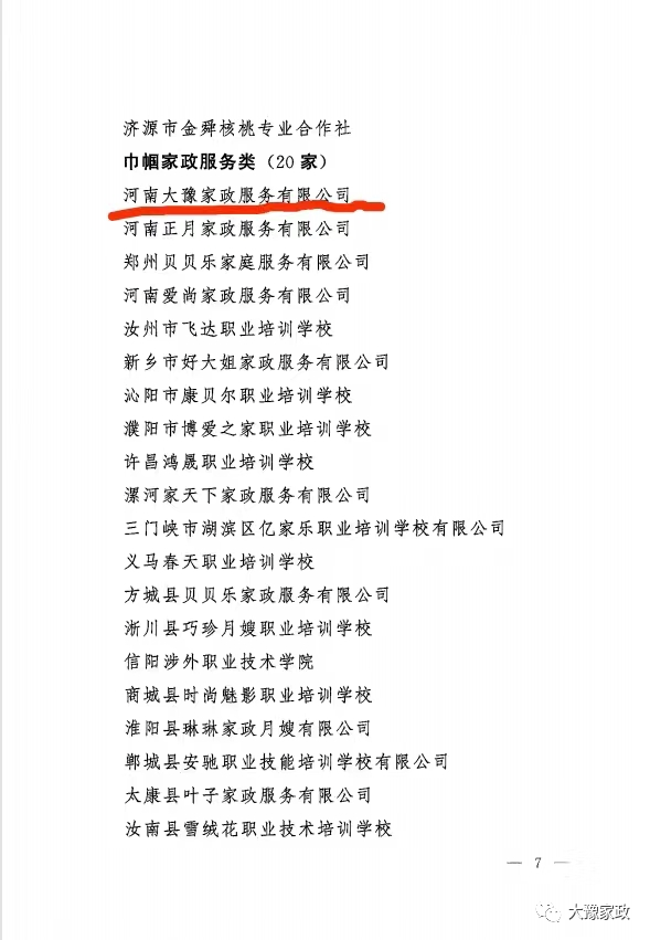 近日,由河南省婦女聯(lián)合會(huì )、河南省商務(wù)廳、河南省文化和旅游廳聯(lián)合發(fā)布豫婦(2023)30號文件《關(guān)于認定河南省巧媳婦創(chuàng )業(yè)就業(yè)工程示范基地的通知》。河南大豫家政服務(wù)有限公司被授予河南省巧媳婦創(chuàng )業(yè)就業(yè)工程示范基地(巾幗家政服務(wù)類(lèi))