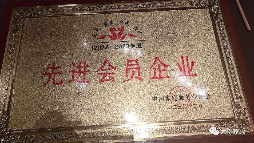 河南大豫家政服務(wù)有限公司獲得中家協(xié)頒發(fā)的2022-2023年度“先進(jìn)會(huì )員企業(yè)”。